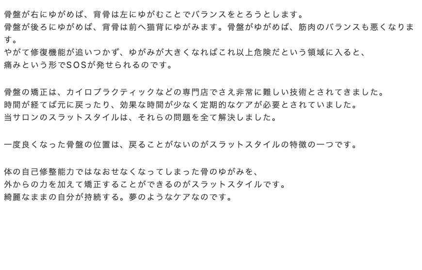 実は骨盤を正常な位置にすることで、スタイルが良くなって痩せる体へと変えてくれるのです。